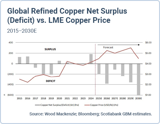 Die Scotia Bank geht davon aus, dass sich die jährliche Kupferunterversorgung bis 2030 auf 600.000 Tonnen ausweiten wird.