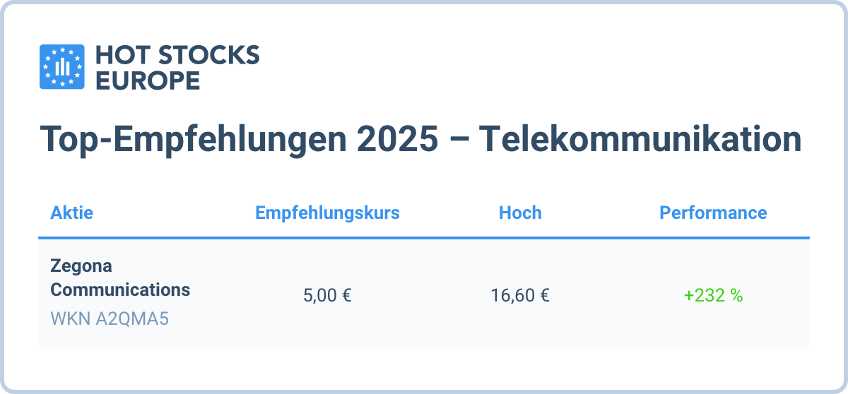 Auch im Telekom-Segment gab es ein herausragendes Signal: Zegona Communication konnte sich nach Empfehlung ebenfalls verdreifachen – ein seltener Treffer in einem sonst eher defensiven Segment.