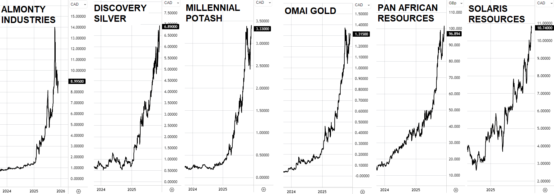 Neben Gold entwickelten sich auch andere Segmente zu Performance-Treibern. Der Silber-Play Discovery Silver (WKN A2QCQW) sprang von 1,10 € auf bis zu 4,00 € – ein klares Zeichen dafür, wie eng Silber an das Edelmetallumfeld gekoppelt ist.