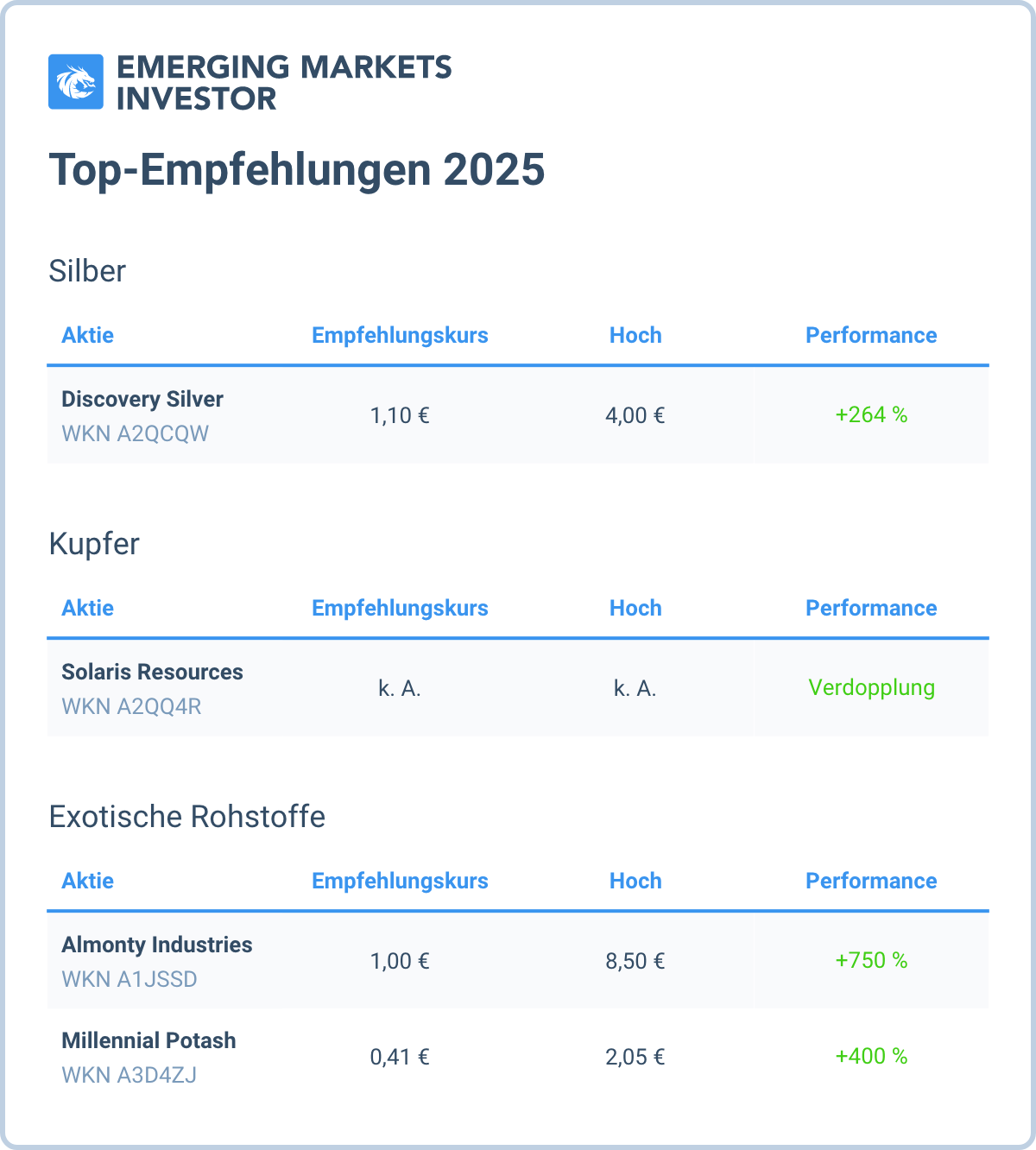 Wenn Sie diese Art von Chancen künftig frühzeitig erkennen möchten: Testen Sie den Emerging Markets Investor jetzt 4 Wochen kostenlos – mit klaren Trendanalysen und strukturierten Entscheidungsgrundlagen.
