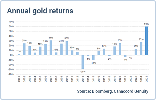 Trotz der damit besten Jahresperformance seit 1979 dürfte das Potenzial von Gold längst noch nicht erschöpft sein. Im Gegensatz zu den Vorjahren, in denen einzelne Ereignisse die Entwicklung des Goldpreises dominierten, wirkten in diesem Jahr mehrere Treiber gleichzeitig.
