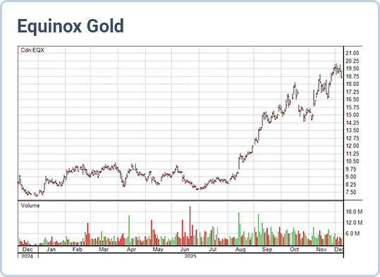 Die kontinuierliche Produktionssteigerung in den beiden kanadischen Minen des Unternehmens, Greenstone und Valentine, und die daraus resultierende Produktions- und Cashflow-Steigerung dürften die Grundlage für eine Fortsetzung der starken Entwicklung des Aktienkurses sein, der zwischen Jahresbeginn und Anfang Dezember von CAD 7,50 auf ein neues Allzeithoch von knapp CAD 20 gestiegen ist.