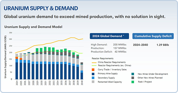 Lassen Sie sich von der trügerischen Ruhe im URAN-Sektor nicht täuschen – die Aussichten sind weiterhin formidabel! Während Uran per sofortiger Lieferung derzeit im Bereich um USD 85 je Pfund notiert, werden längerfristige Lieferverträge nach Aussage des Marktführers Cameco derzeit auf einem Niveau von knapp USD 90 geschlossen – vor allem von Kraftwerken, die seit Jahrzehnten in Betrieb sind, in der Regel einen Uran-Bestand für mindestens drei Jahre führen und die sich ihren Bedarf auf Jahre hinaus sichern möchten. Das macht Sinn, dürfte es zukünftig deutlich schwieriger werden, den eigenen Bedarf zu annehmbaren Preisen zu sichern, skizzieren Branchenexperten doch ein deutlich schnelleres Wachstum aufseiten der Nachfrage gegenüber dem Angebot:
