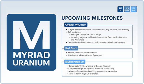 Die ohnehin schon fantastische Story von MYRIAD URANIUM wird mit der jüngsten Meldung noch spektakulärer! Das Copper-Mountain-Projekt war seit den 1950er-Jahren im Besitz verschiedener Unternehmen, die Explorationsprogramme, Entwicklungs- und Ingenieurarbeiten sowie teilweise auch Uranproduktion durchführten. Alle bisherigen Betreiber haben das gewaltige Potenzial des Vorkommens erkannt und teilweise große Summen in die Erkundung investiert. Während des Uran-Booms 2007 ist das Interesse am Copper Mountain-Projekt schon einmal durch die Decke geschossen: