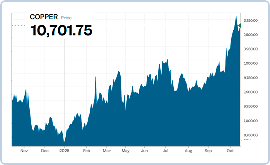 Nicht nur die Preise für Edelmetalle explodieren, neue Hochs gab es im zuletzt auch bei KUPFER! Am 8. Oktober stieg der Kupferpreis an der Londoner Metallbörse mit USD 10.886/Tonne auf ein neues 52-Wochenhoch und hat sich damit bis auf 2 Prozent an seine Allzeithochs herangearbeitet.