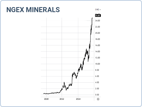 Entsprechend sehen Benchmark und andere Häuser längerfristig Defizite von rund 400.000 Tonnen jährlich – ein explosiver Cocktail, der Kupferinvestments extrem spannend macht. Unser Top-Empfehlung NGEX, die seit unserer Erstempfehlung innerhalb 72 Monaten von CAD 0,50 auf über CAD 25 explodiert ist, und sich damit mehr als verfünzigfacht hat, ist das beste Beispiel dafür.