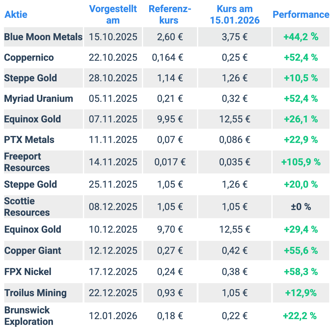 Am kommenden Montag (19.01.2026) präsentieren wir erneut eine Neuvorstellung aus dem Rohstoff-Sektor.