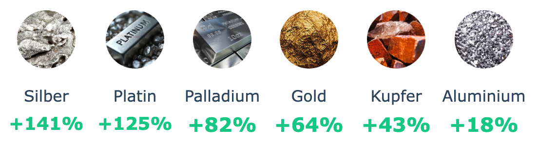 Rohstoffe befinden sich mitten in einem Superzyklus, der Anlegern spektakuläre Gewinnmöglichkeiten eröffnet! 2025 legte Silber +141 % zu, dahinter folgt Platin mit +125 %, auch Palladium lag mit +82 % noch vor Gold mit +64 %. Kupfer konnte mehr als +43 % gewinnen, Aluminium knapp +18 %.
