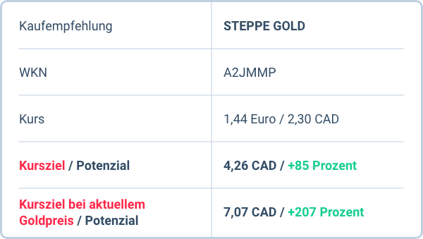 Wer im laufenden Goldbullenmarkt also eine Momentumaktie sucht, dürfte bei STEPPE GOLD fündig werden!