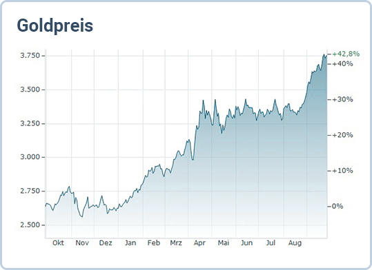 Die Rekordjagd bei den Edelmetallen setzt sich auch zum Wochenstart weiter fort! Während Gold stramm in Richtung der Marke von USD 4.000 läuft, zog Silber bis auf USD 46 und damit auf ein neues 14-Jahreshoch an, und auch Platin notiert mit rund USD 1.600 je Unze auf einem neuen Mehrjahreshoch.